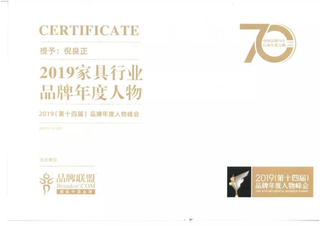 峰會以“誰為中國贏得尊敬”為主題,圍繞品牌理念、年度推崇、人物標(biāo)識、卓越貢獻(xiàn)四大核心元素,表彰“以中華情懷描繪品牌夢想藍(lán)圖,以民族智慧開創(chuàng)品牌全球格局”的年度品牌人物。現(xiàn)場發(fā)布“2019十大品牌年度人物”“中國品牌70年70人”“中國行業(yè)品牌70年70人”三大榜單。圣奧集團(tuán)董事長倪良正先生獲評“中國行業(yè)品牌70年70人·2019中國家具行業(yè)品牌年度人物”稱號,家具行業(yè)唯一獲獎。
