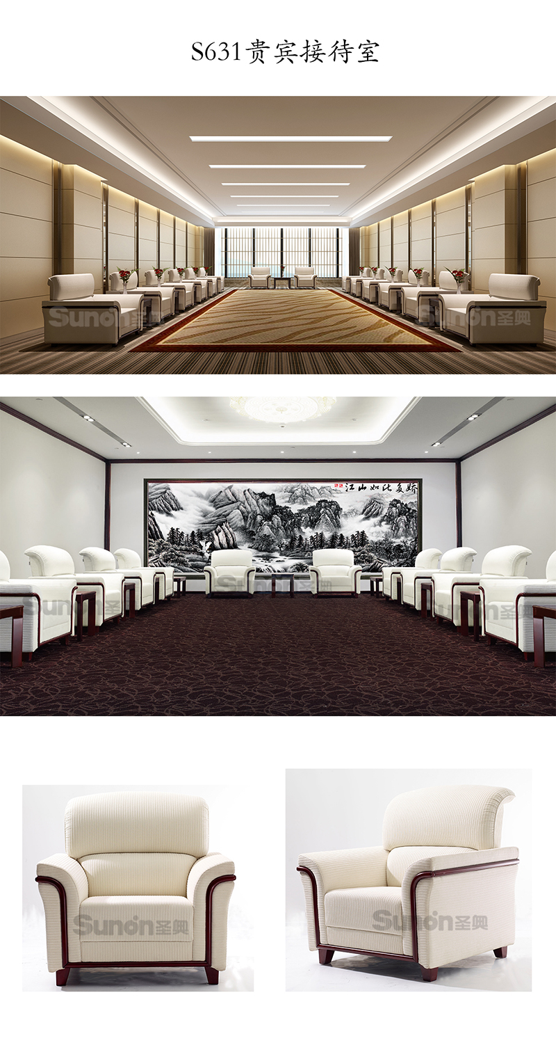 S631沙發(fā)的造型大氣穩(wěn)重,亮點(diǎn)的油漆造型條提煉了“圈椅”扶手的優(yōu)美圓婉,給穩(wěn)重的貴賓沙發(fā)增添了一抹靈動婉約的氣質(zhì)。